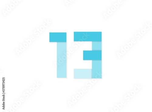 13 number, vector logo, paper cut desing font made of blue color tones .Isolated on white background. Eps10 illustration