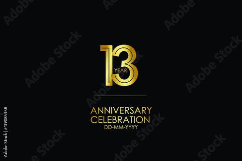 13 year anniversary celebration Gold Line. logotype isolated on Black background for celebration, invitation card, and greeting card-Vector