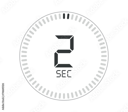 2 seconds. Seconds counter digital watch design. Vector for marking time isolated on white background