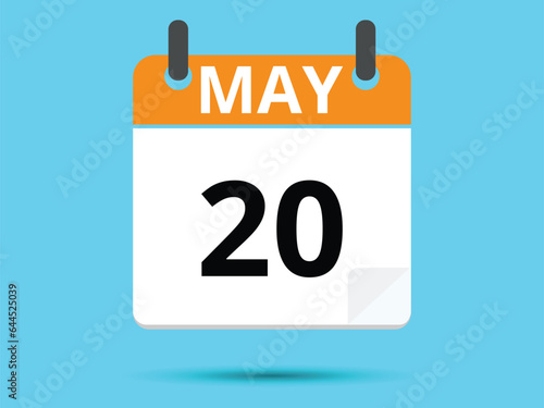 20 May. Flat icon calendar isolated on blue background. Vector illustration.