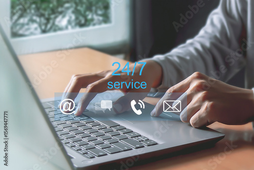 24-7 Service 24-7 online store concept with full-time, 24-7 access to global customer service.