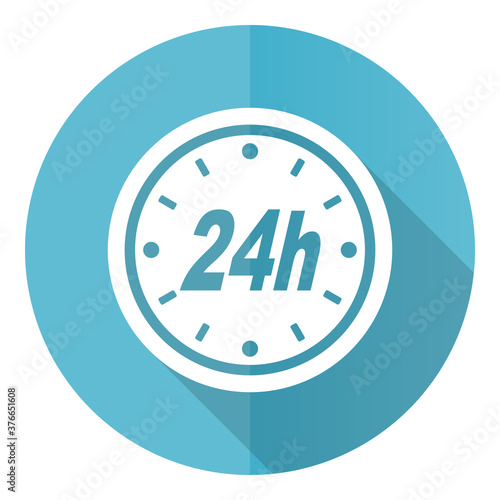 24h vector icon, flat design blue round web button isolated on white background