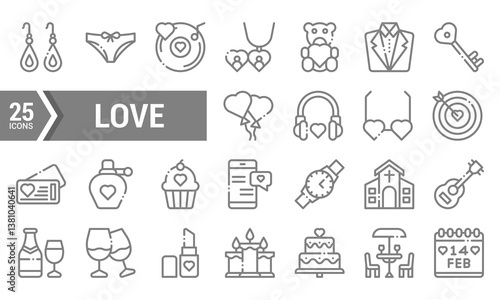 25 Colorful Love Line Cut Icons for Valentines Day Designs.