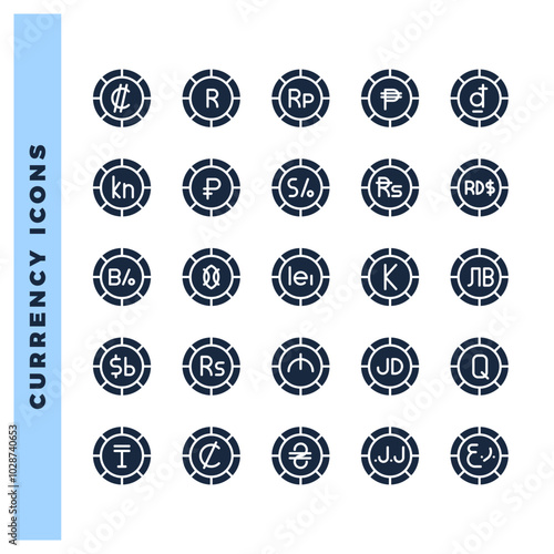 25 Currency Coin Glyph icon pack. vector illustration.
