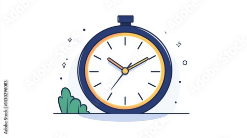 26.A clean, minimal vector design of a round wall clock with simple hour and minute hands, outlined with adjustable stroke width and a plain white background.