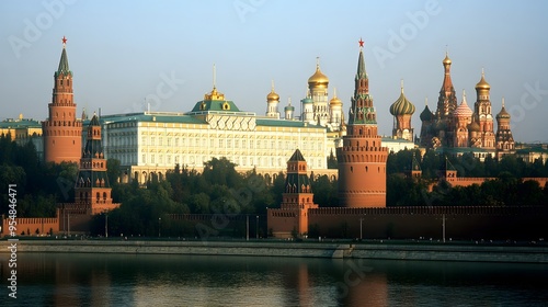 28. **Visualize the Kremlin in Moscow with its historic walls, towers, and St. Basil's Cathedral in the background.**
