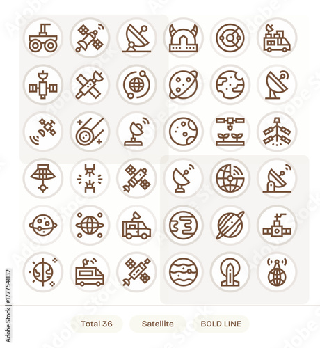 36 Grid Fitted Bold Line Vector Icons designed for Satellite Interface