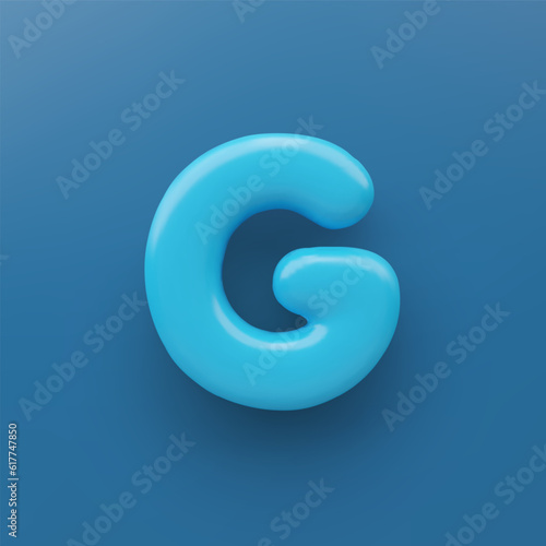 3D Blue uppercase letter G with a glossy surface on a blue background .