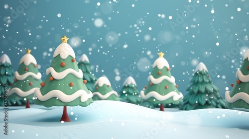 3d cartoon christmas trees and snow.