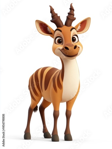 3D cartoon of a happy young antelope smiling on white background