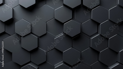 3D embossed hexagon design, monochromatic gradient from light gray to black, soft shadows adding depth, abstract and modern
