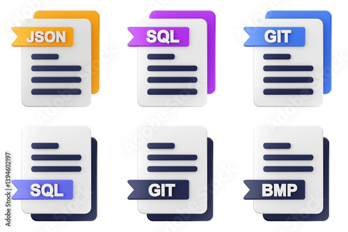 3d file format type icon set bundle json sql git bmp