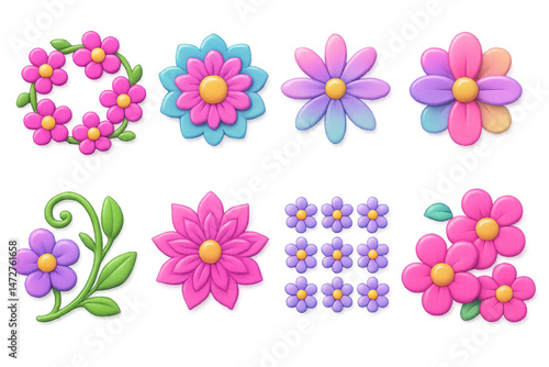 3d floral icons set – blossom, petal, wreath, leaf, pastel, nature, spring, bright, decor, arrangement. 3D icon set