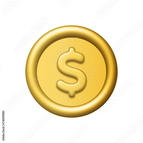 3d gold dollar coin isolated on white background. Design element illustration PNG.