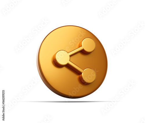 3D Golden circular icon with a share symbol, representing content sharing. 3D Illustration.