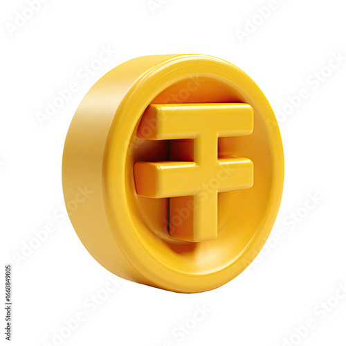 3D golden coin with stylized Kazakh Tenge symbol isolated on black background