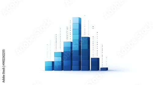 3D Gradient Blue Bar Chart, Abstract 3D bar chart with gradient blue bars on a white background