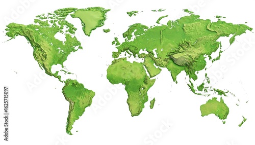 3D Green World Map Relief. (2)