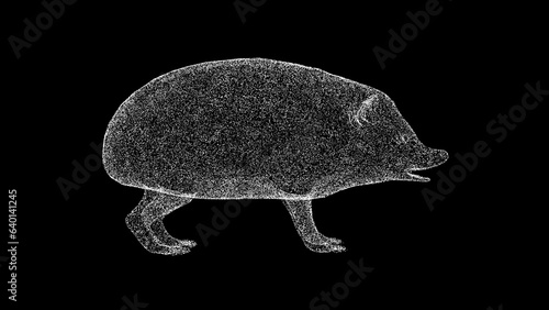 3D hedgehog on black bg. Wild animals concept. Protection of the environment. For title, text, presentation. 3d animation.
