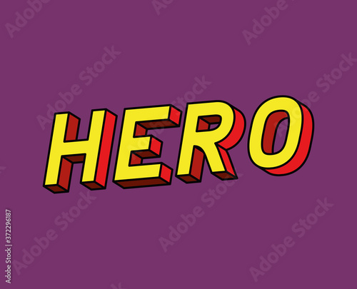 3d hero lettering on purple background design, typography retro and comic theme Vector illustration