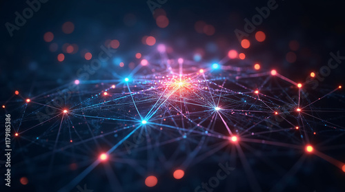 3D Holographic Neural Network Visualization in Blue and Orange Tones
