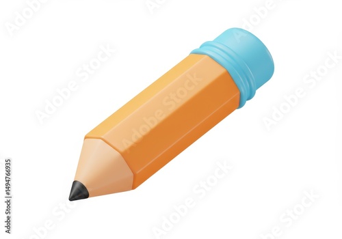 3D Illustration of Pencil with blue eraser isolated on white background, 3d render