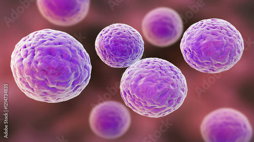 3D Illustration of Purple Lymphocytes in Microscopic View – Immune System and Medicine Concept