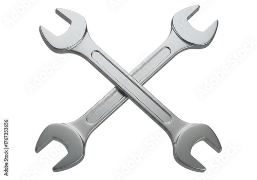3d illustration of two crossed silver wrenches, symbolizing repair, maintenance, or a toolkit, isolated on transparent background on transparent background