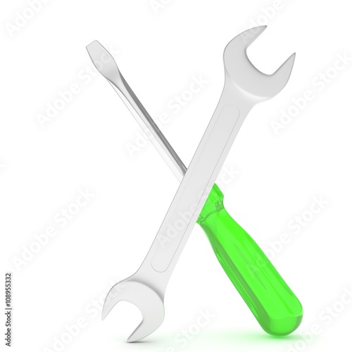 3D Illustration Wrench and screwdriver, service concept