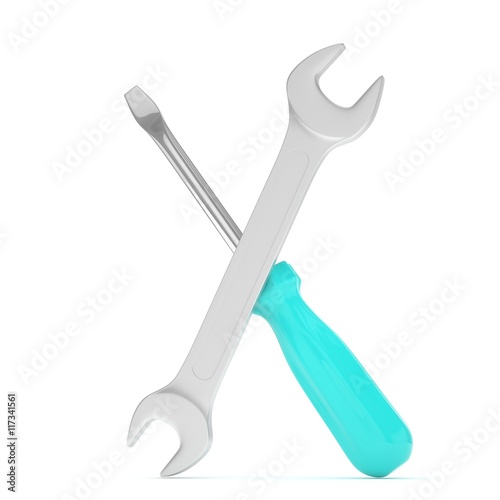 3D Illustration Wrench and screwdriver, service concept