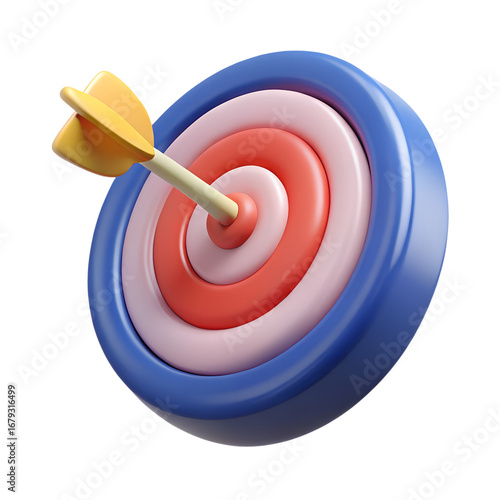 3D isometric aiming target with bullseye on white background.
