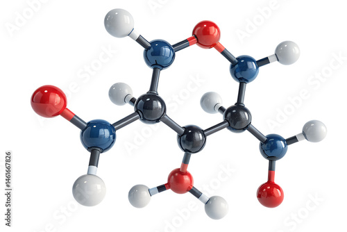 3D model of a molecule rendered in a clean scientific style, isolated on a white or transparent background. The structure features connected spheres representing atoms and cylindrical bonds, ideal for
