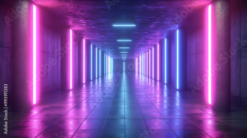 3D Neon Lights Abstract Background - Futuristic Glowing Corridor