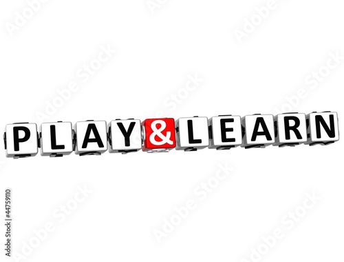 3D Play And Learn Button Click Here Block Text