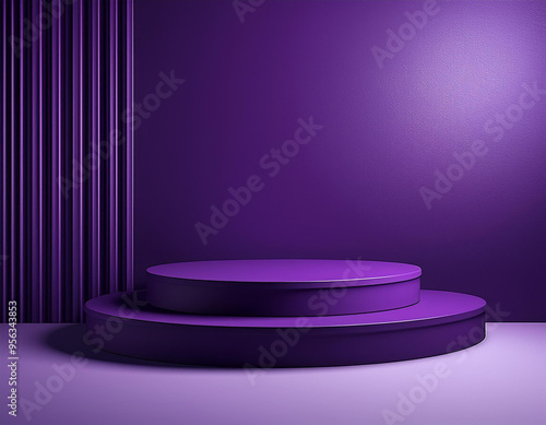 3D realistic empty neon colors podium on dark blue background technology style. Product display for banner mockup, showroom, showcase, presentation,