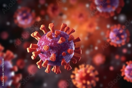 3D render of a medical with virus cells bacteria. Multiple realistic coronavirus particles floating