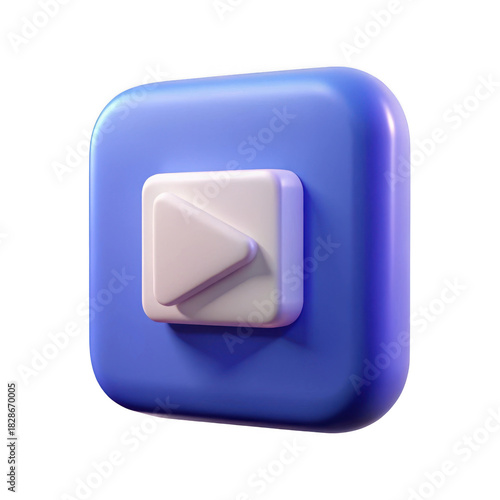 3d rendered blue play button icon, media player symbol, modern ui design element, app interface graphic, isolated on transparent background