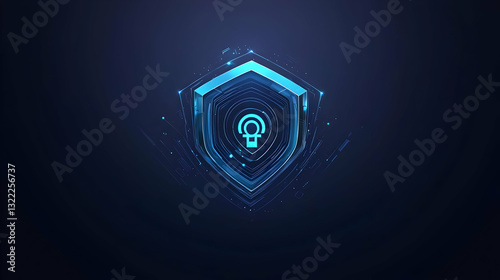 3D Rendered Futuristic Hexagonal Shield Icon With Glowing Blue Light On Dark Blue Background Protecting Digital Data