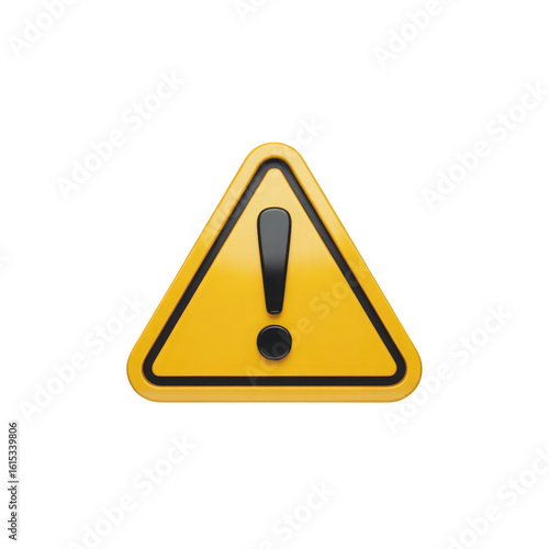 3d rendered illustration of an exclamation mark inside a yellow warning triangle isolated on transparent background