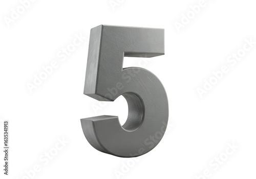 3D Rendered Silver Number Five Isolated on Transparent Background