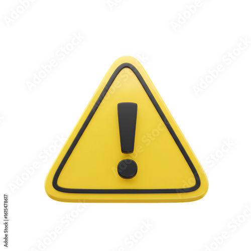 3D Rendered Warning Sign with Yellow Triangle and Black Exclamation Point Icon