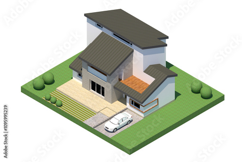 3D rendering illustration of a two-story detached house