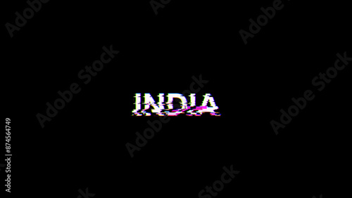 3D rendering India text with screen effects of technological glitches