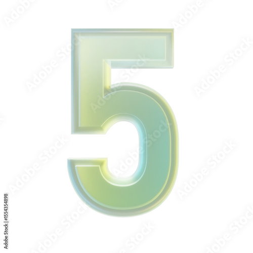 3d rendering number three 5 glass transparent gradient green yellow numeral