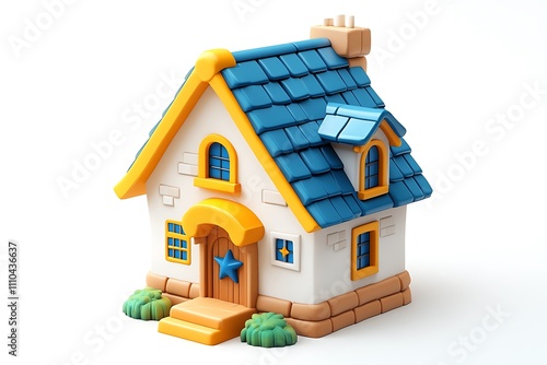 3d rendering of a small residential house with a chimney and a red roof on a white background. Home and house. Living place. Build your own home.