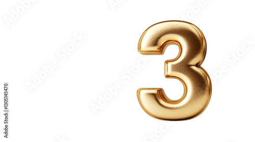 3d rendering of golden number three isolated on transparent background with alpha channel