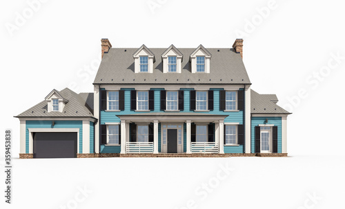 3d rendering of modern cozy classic house in colonial style with garage and pool for sale or rent. Isolated on white.
