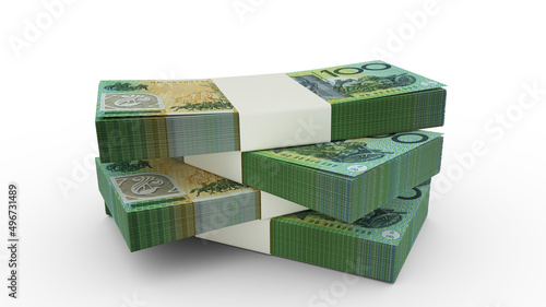 3d rendering of Stack of 100 Australian dollar notes. Few bundles of Australian currency isolated on white background