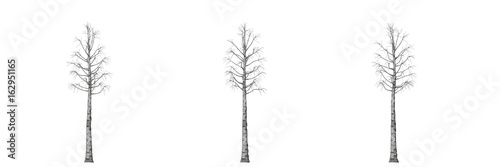 3d rendering of three trees isolated on white