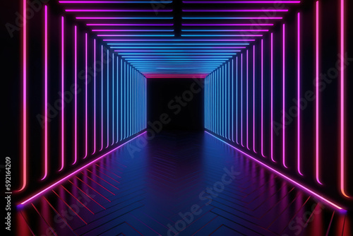 3d rendering, rounded colors neon lines, glowing in the dark. Abstract minimalist geometric background. Ultraviolet spectrum. Cyber space. Futuristic wallpaper, AI generated